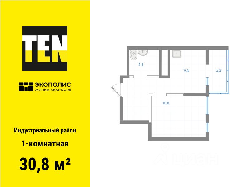 Квартира в ЖК ''Экополис'' в Индустриальном районе от застройщика TEN девелопмент! Ключи в 3 квартале 2026 года.