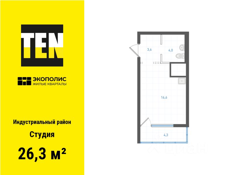 Квартира в ЖК ''Экополис'' в Индустриальном районе от застройщика TEN девелопмент! Ключи в 3 квартале 2026 года.