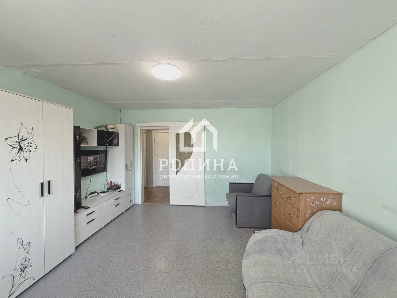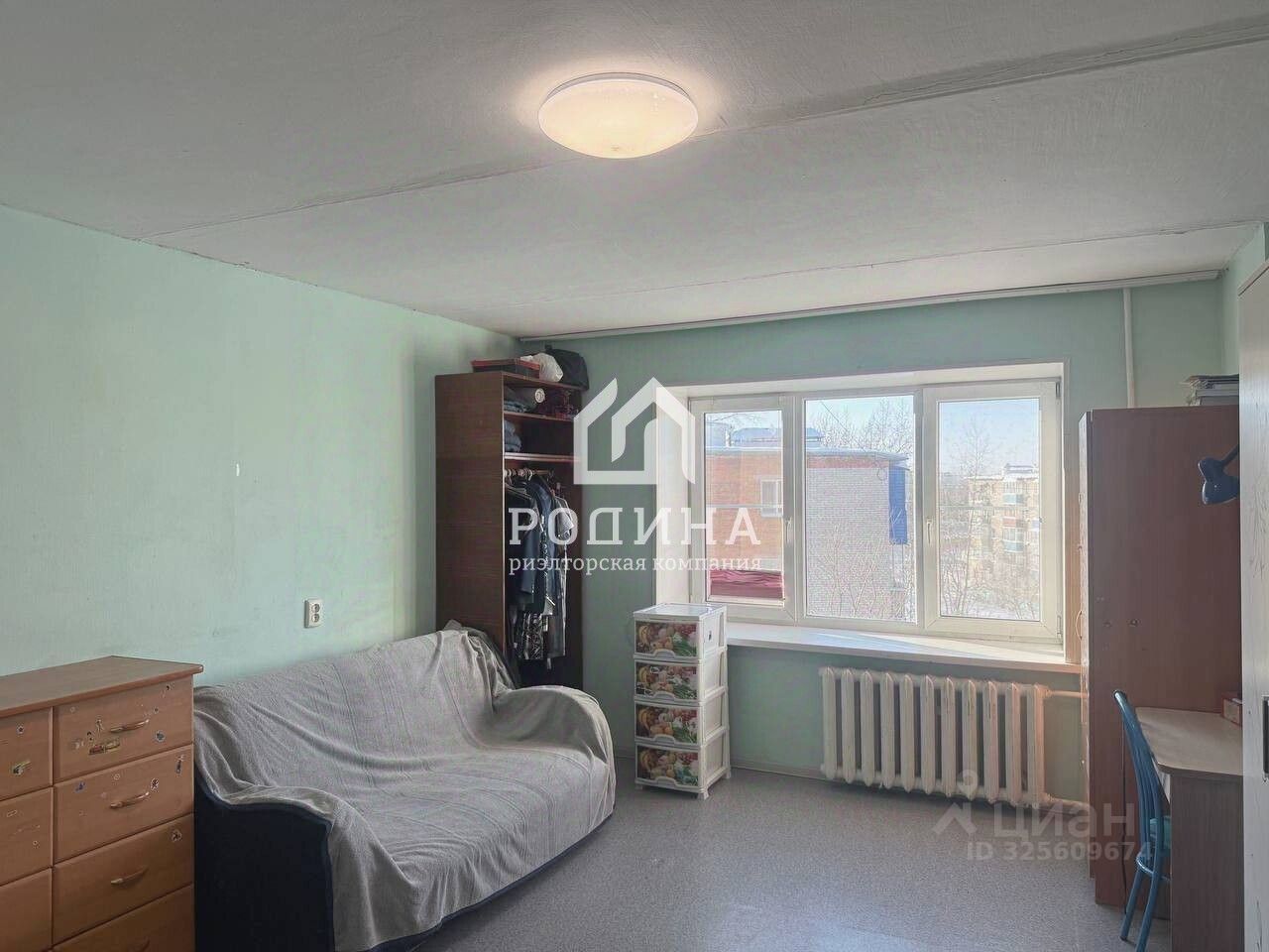 Квартира теплая, расположена на пятом этаже девятиэтажного дома. Комната большая, светлая, окна выходят на улицу