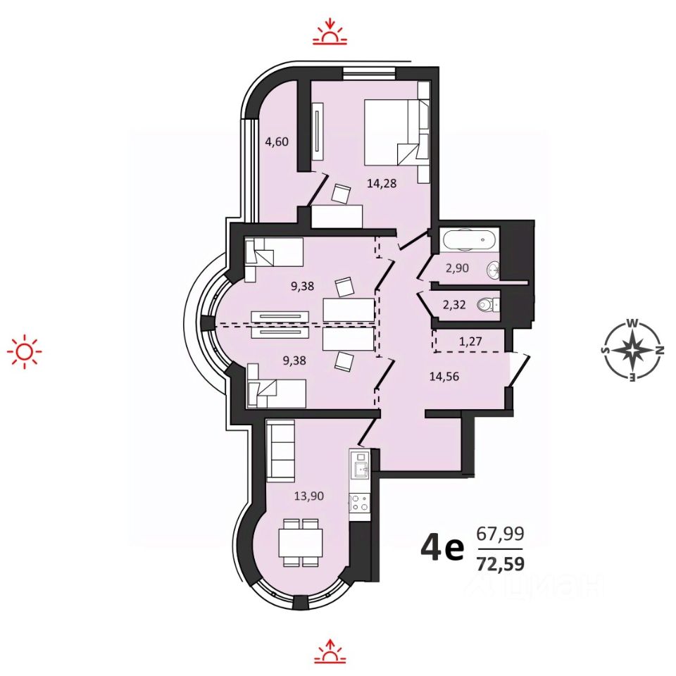 Общая площадь48,34 м2