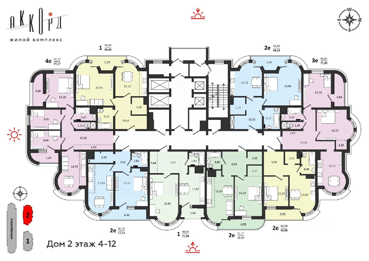 О жилом комплексе. Состоит из двух домов высотой 25 этажей. На территории комплекса предусмотрена стильная и красочная детская площадка, которая станет настоящей радостью для маленьких жителей. Дизайн-проект подъездов продуман с особым вниманием к деталям, которые создадут уютную атмосферу. Для комфорта жителей в каждом подъезде предусмотрены 4 современных и безопасных лифта.