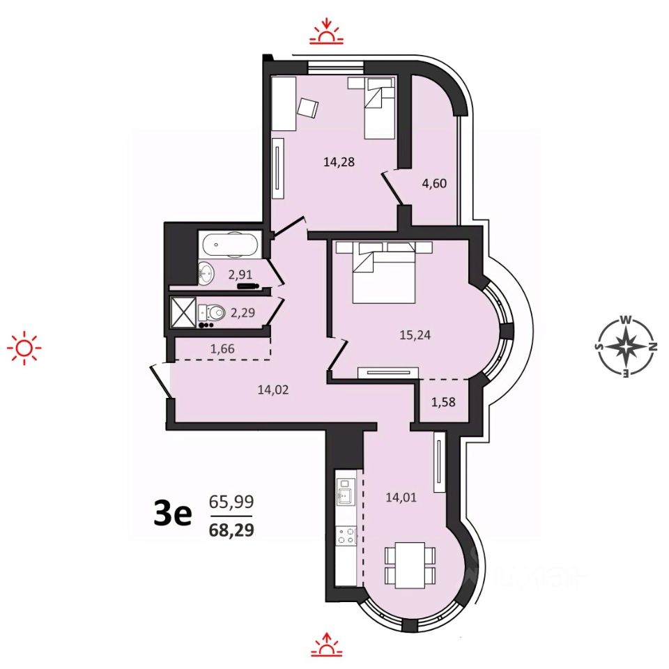 О квартире. Кухня-гостиная и спальня с эркерной зоной Раздельный санузел Окна выходят на 3 стороны Место под встроенный шкаф Умный дом - - автоматическая передача показаний приборов учета, - автоматизированный доступ в места общего пользования ЖК с помощью беспроводной системы, не нужно даже доставать ключи из кармана - автоматическое открывание дверей - управление домофоном через приложение