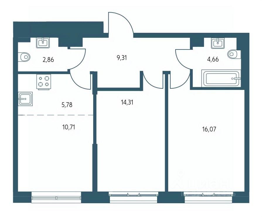Общая площадь61,66 м2