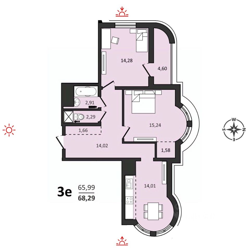 О квартире. Кухня-гостиная и спальня с эркерной зоной Раздельный санузел Окна выходят на 3 стороны Место под встроенный шкаф Умный дом - - автоматическая передача показаний приборов учета, - автоматизированный доступ в места общего пользования ЖК с помощью беспроводной системы, не нужно даже доставать ключи из кармана - автоматическое открывание дверей - управление домофоном через приложение