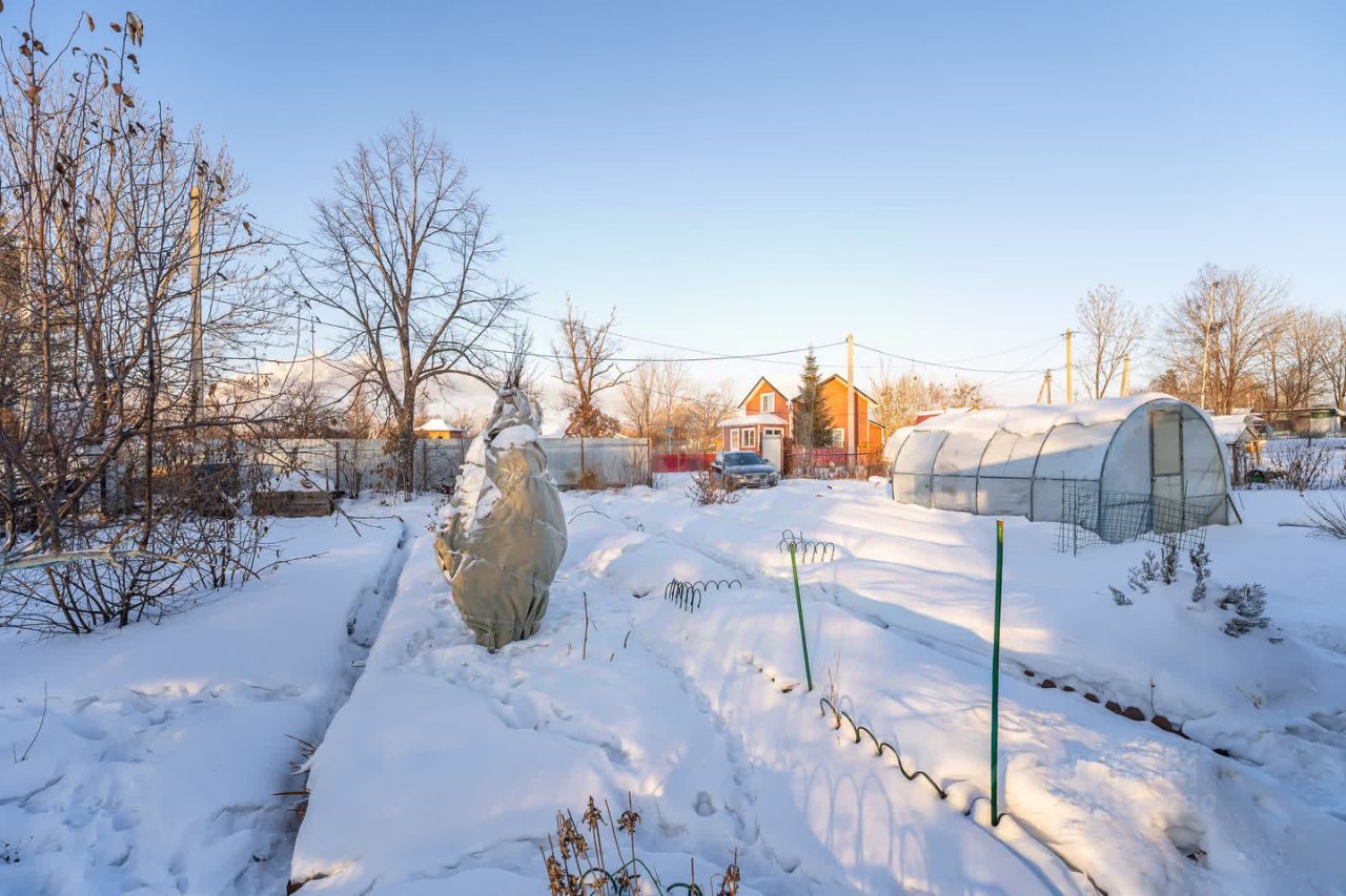 Участок площадью 7,8 соток в СНТ ''Фронтовик'' в районе аэропорта предлагает готовую инфраструктуру для загородной жизни и садоводства. Территория полностью электрифицирована, оборудована летним водопроводом и включает два капитальных строения: сарай для хранения инвентаря и утепленный сарай, пригодный для круглогодичного содержания птицы. Основная ценность объекта — сформированный многолетний сад с разнообразными плодовыми насаждениями. На участке растут яблони, груша, персик, алыча и вишня. Ягодное разнообразие представлено жимолостью пяти сортов, смородиной, крыжовником, мускатным виноградом, а также клубникой как одноразового, так и ремонтантного плодоношения. Ландшафт дополняют декоративные кустарники, розы, ирисы и флоксы, создающие ухоженную атмосферу.