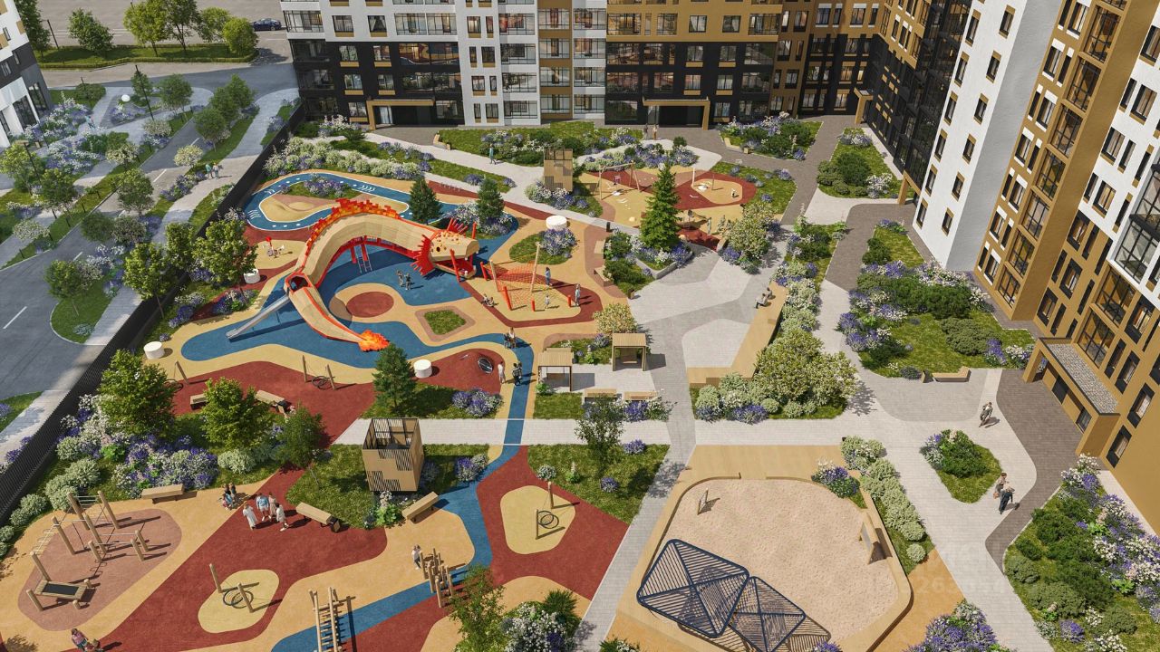 Сказочные дворы Дворы закрыты от машин и посторонних, при этом на территории всегда много света и пространства. Богатое озеленение, разнообразная геопластика, детские игровые и спортивные площадки, зоны для отдыха - все, чтобы каждому жителю было приятно проводить здесь время.