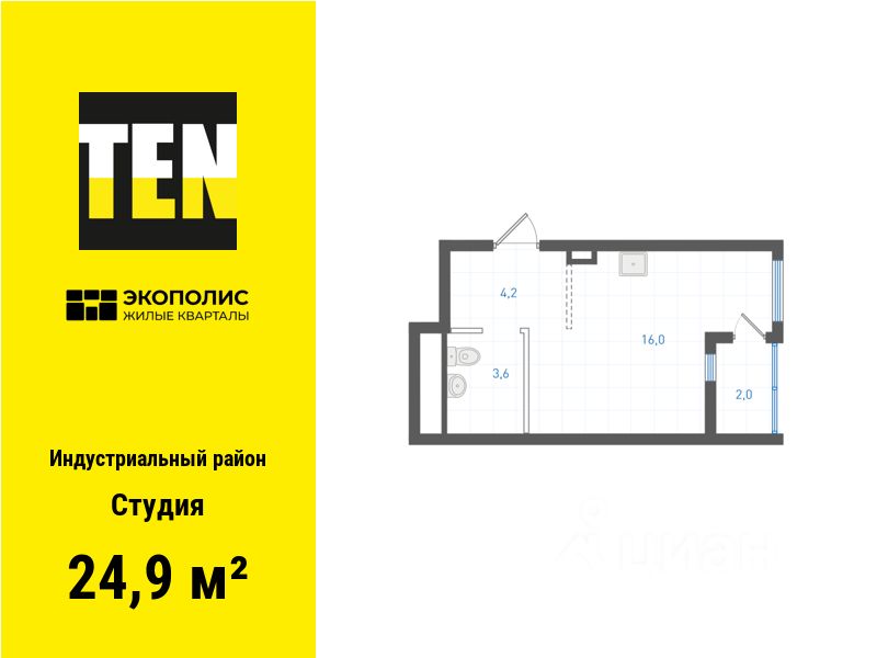 Квартира в ЖК ''Экополис'' в Индустриальном районе от застройщика TEN девелопмент! Ключи в 3 квартале 2026 года.