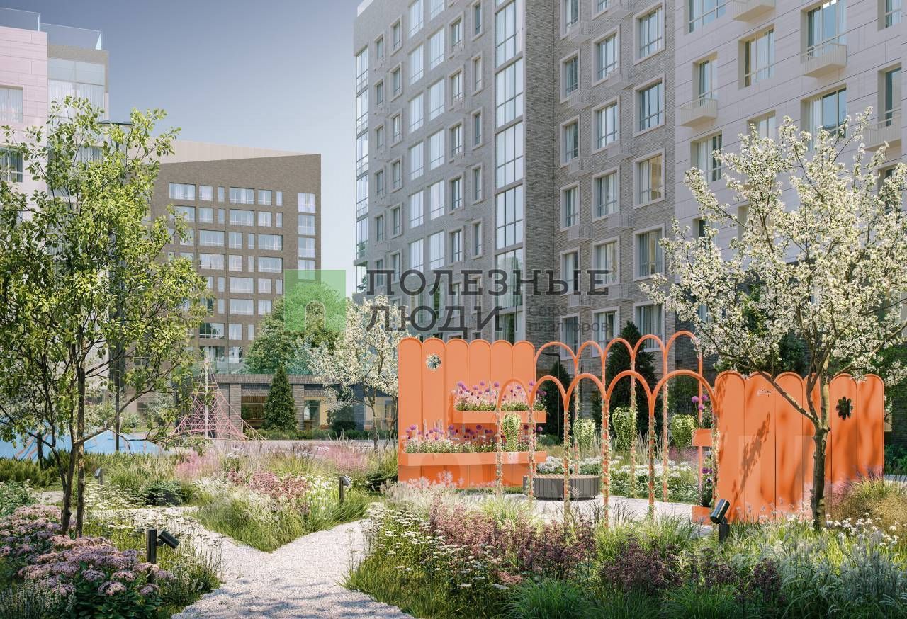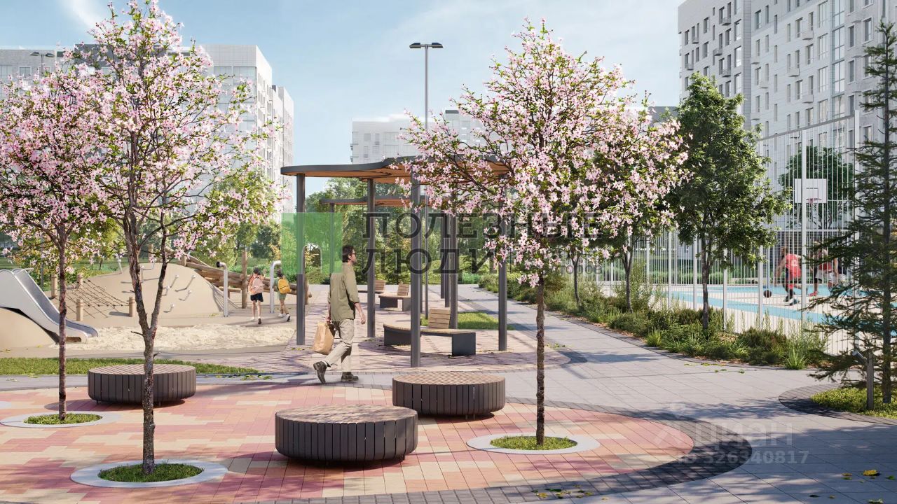 Цветущие деревья и пешеходный бульвар