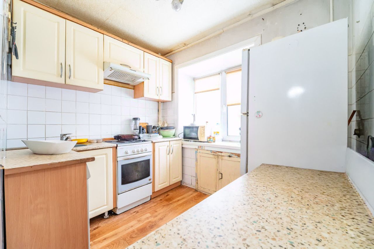 Условия продажи: В собственности у двух человек (по 0,5 доли).Прямая продажа, без обременений.В квартире остаётся мебель и техника: кухонный гарнитур, газовая плита, холодильник, микроволновая печь, стол, диваны, шкаф-купе и другие предметы обстановки — заезжайте и начинайте жить или делайте ремонт под себя.