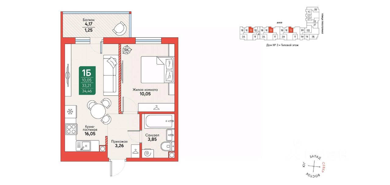 Общая площадь34,46 м2