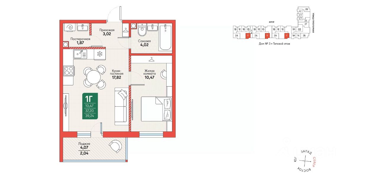 Общая площадь39,24 м2