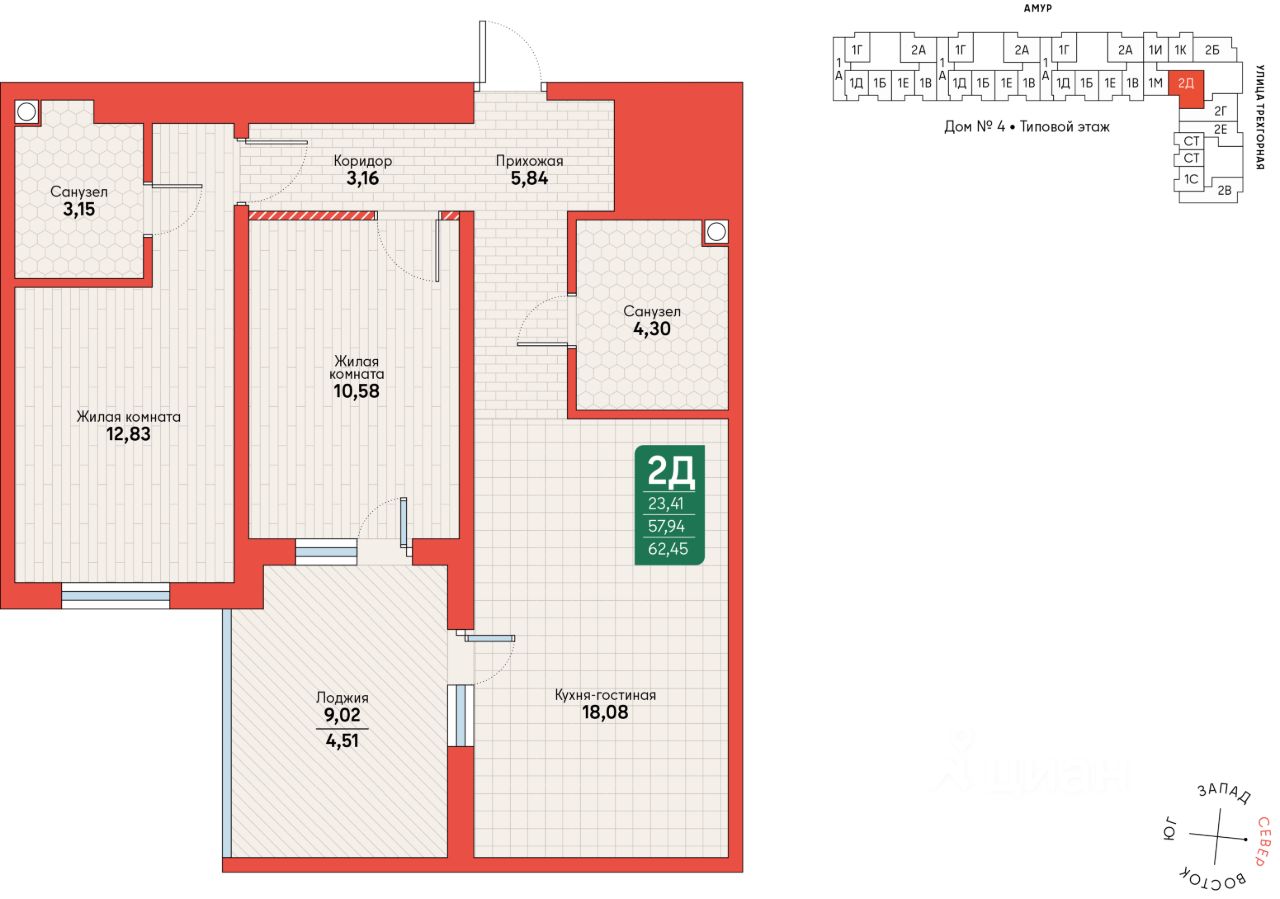 Общая площадь62,45 м2