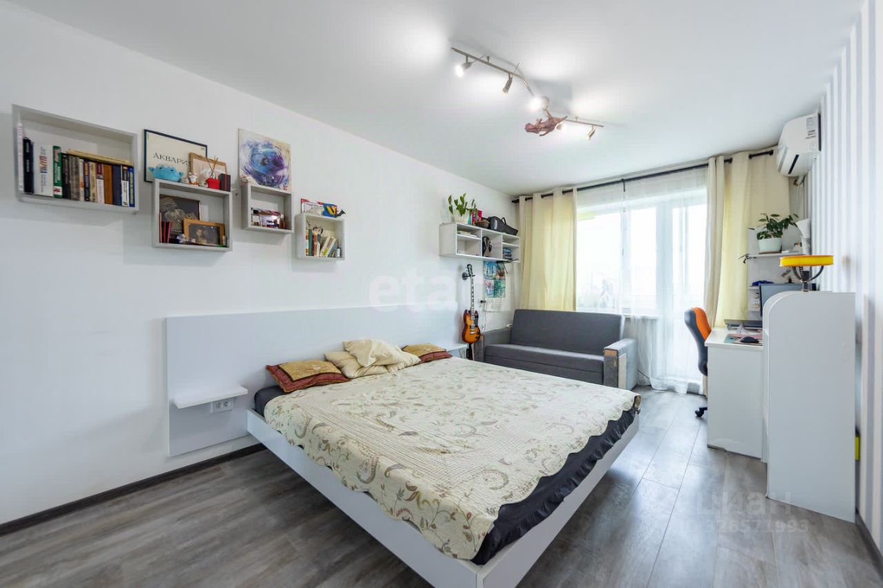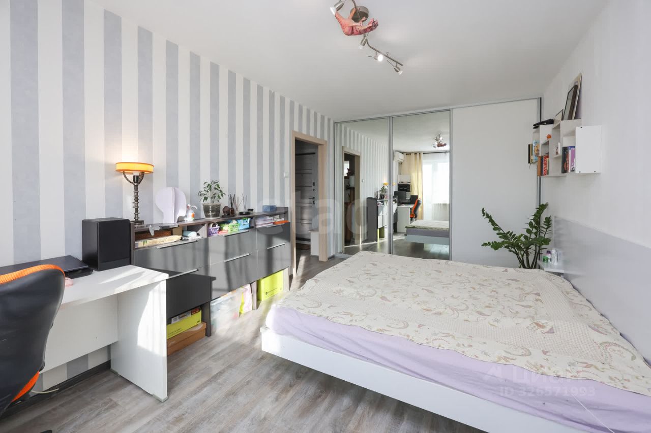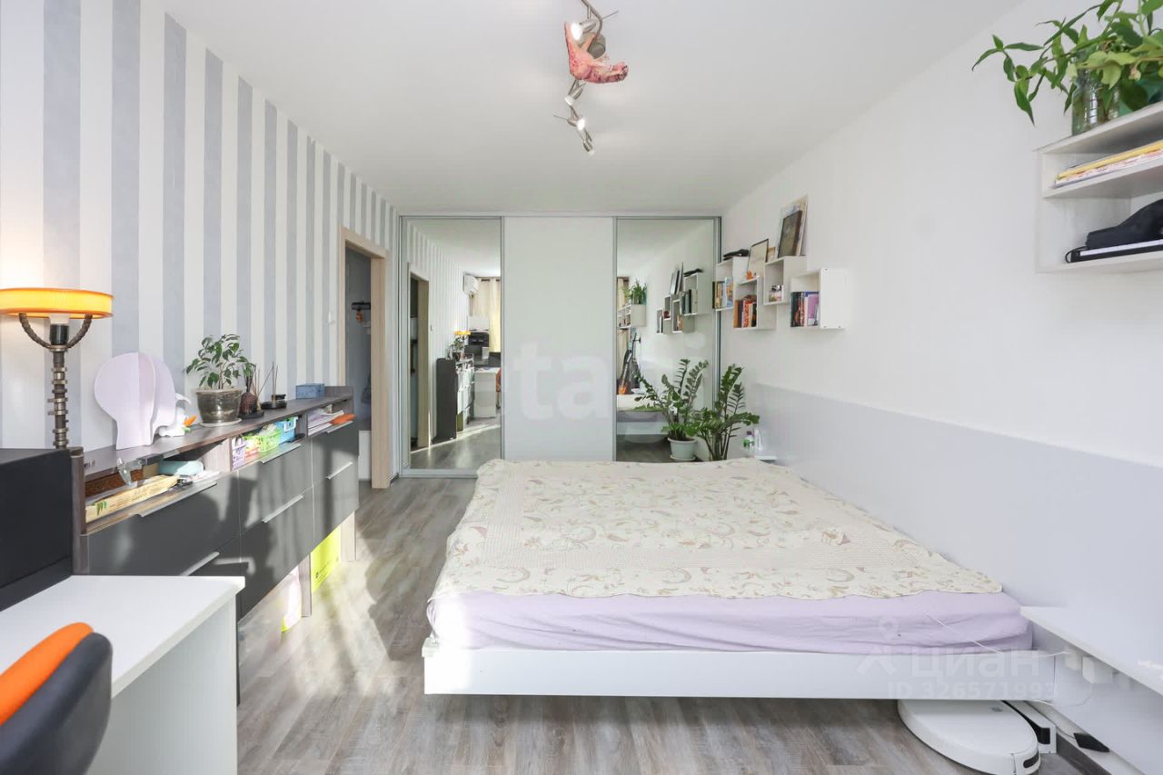 В квартире остаётся эксклюзивная мебель, создана золотыми руками хозяина. Новый кухонный гарнитур, парящая кровать с подсветкой размер 180х200, также большой функциональный шкаф-купе.