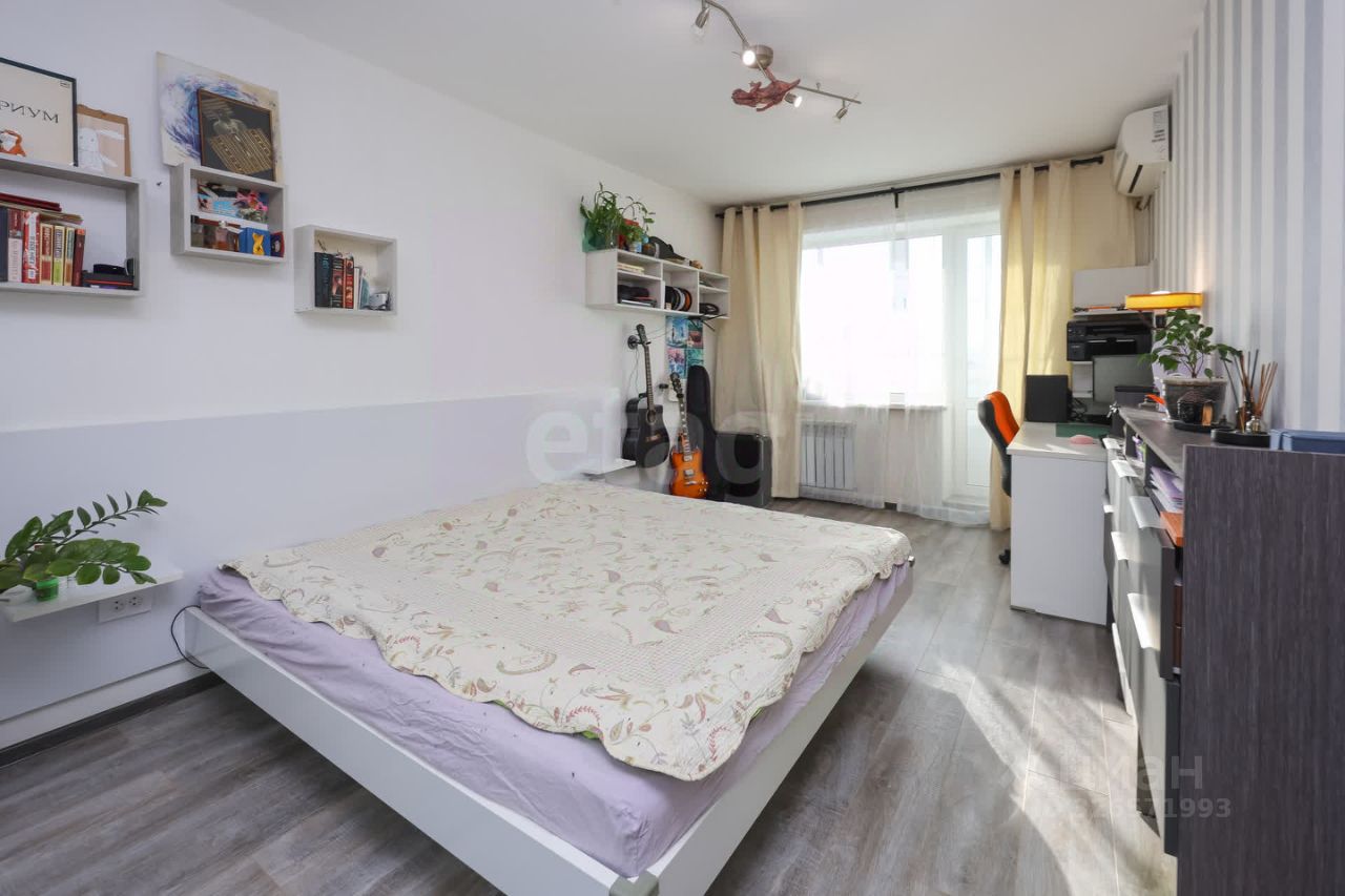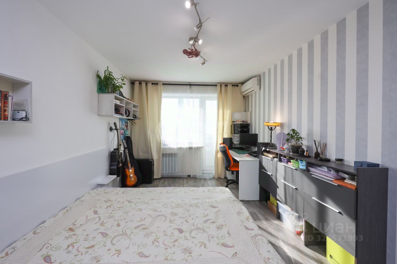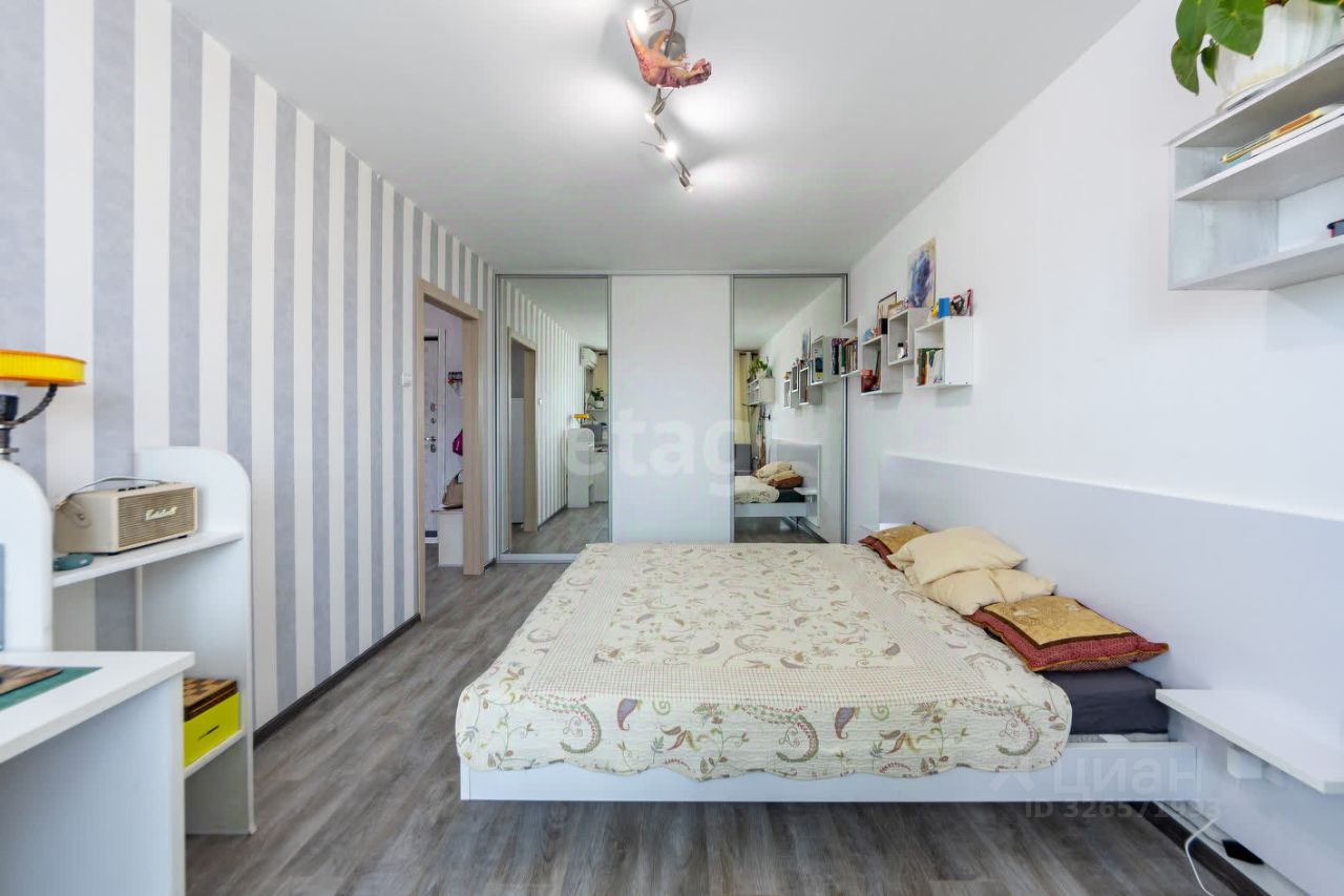 В квартире остаётся эксклюзивная мебель, создана золотыми руками хозяина. Новый кухонный гарнитур, парящая кровать с подсветкой размер 180х200, также большой функциональный шкаф-купе.