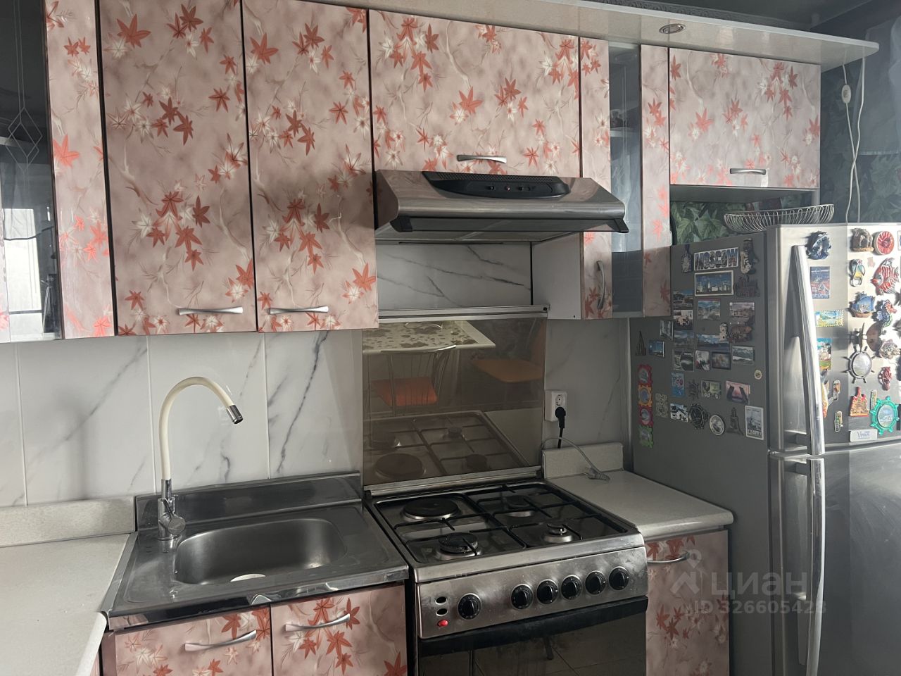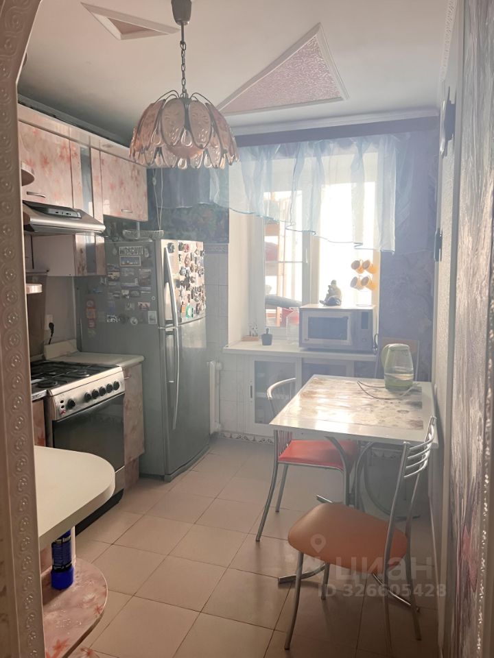 Кухня просторная, площадью 12 м², оборудована всем необходимым: газовой плитой, холодильником и вытяжкой. В квартире выполнен евро ремонт, стены украшены стильными обоями.