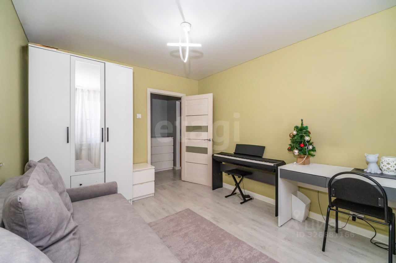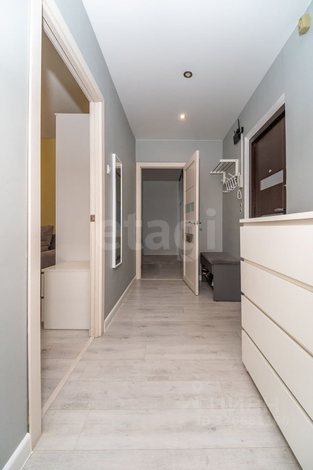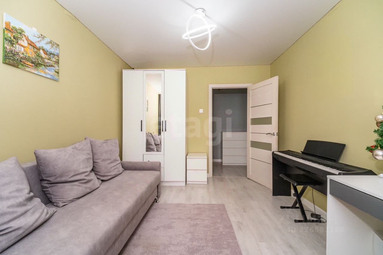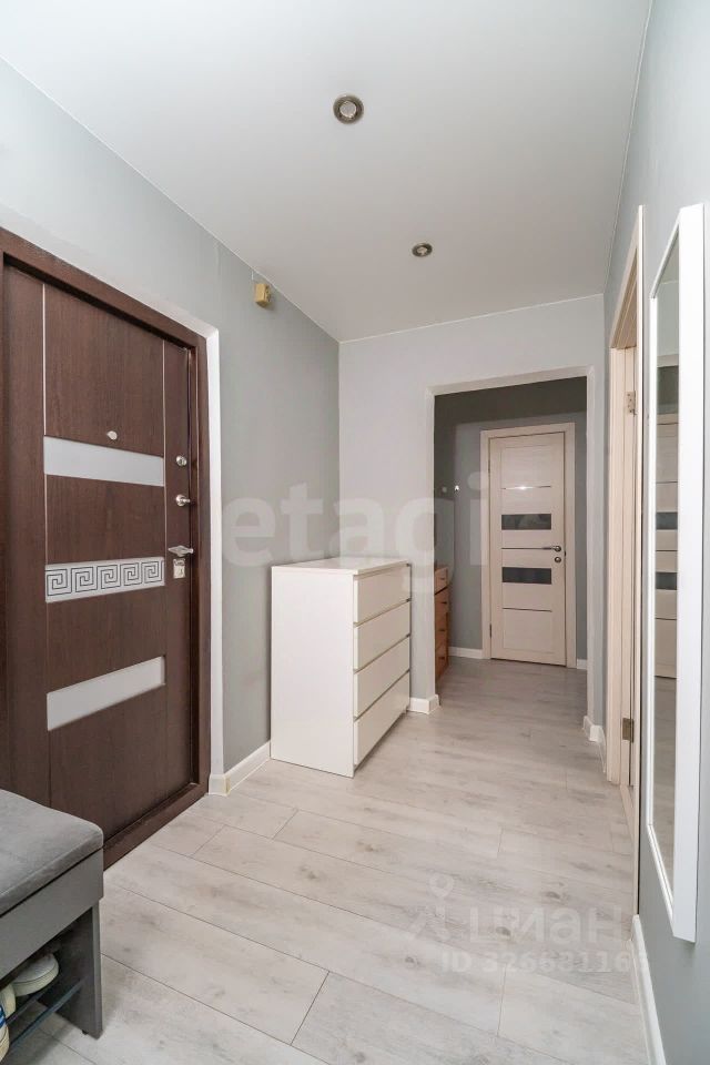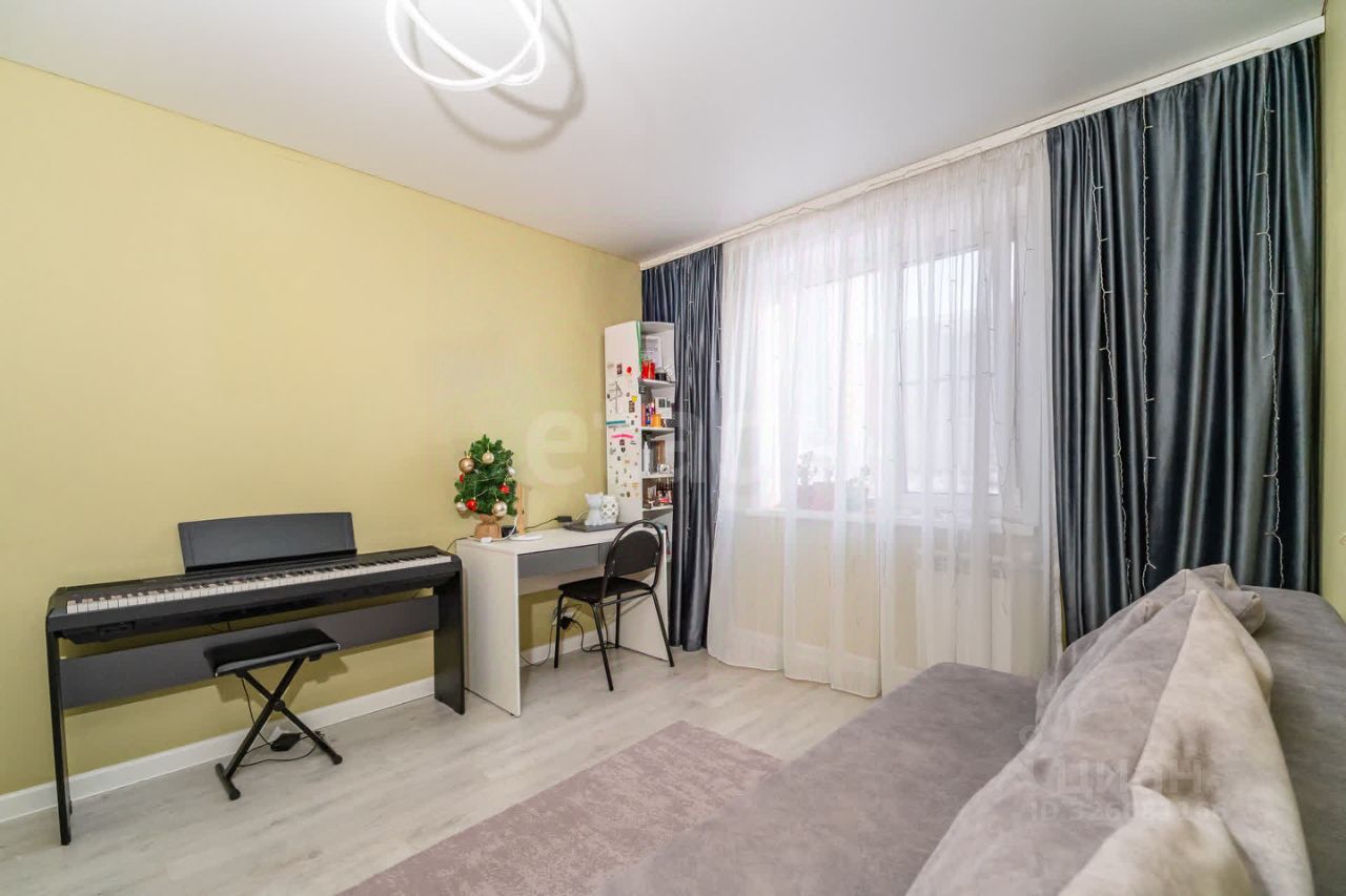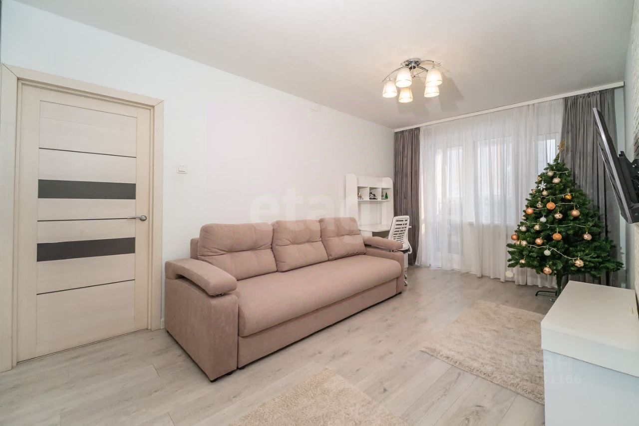 Продается светлая двухкомнатная квартира на третьем этаже десятиэтажного дома 2012 года постройки. Объект полностью готов к проживанию: выполнен качественный ремонт в нейтральной цветовой гамме, уложен ламинат, установлены современные металлопластиковые окна, выходящие в тихий двор. Планировка функциональная, с раздельными комнатами и изолированным санузлом, отделанным керамической плиткой. Кухня оборудована гарнитуром, встроенной электрической плитой и холодильником, вся мебель и техника остаются новому владельцу, что позволяет заехать без дополнительных затрат.
