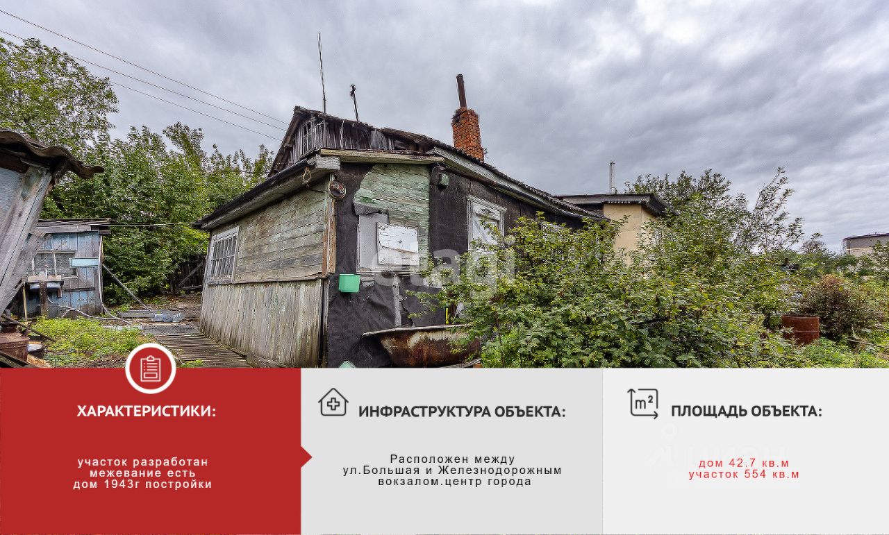 В продажу вышел жилой дом на участке в очень хорошем районе- между железнодорожным вокзалом и ул. Большая.Лучше заезжать через ул.Лазо или ул.Ухтомского,там дорога асфальтированная. Земля разработана. Очень хорошая локация. Дом ветхий, но дает возможность частично рассчитаться материнским сертификатом. Отопление печное, вода с колонки. со следующего года проводят газ, что очень сэкономит платежи по коммунальным услугам. очень хорошее предложение ,звоните, помогу одобрить ипотеку, проведу сделку под ключ.Если рассматриваете строительство дома в центральной части города,это идеальное предложение. Поможем с выбором застройщика ,что для вас будет совершенно бесплатно.