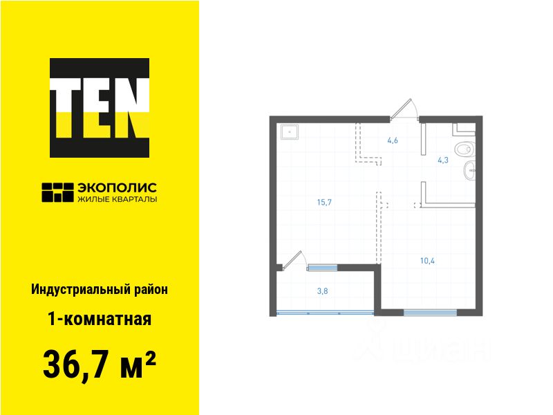 Квартира в ЖК ''Экополис'' в Индустриальном районе от застройщика TEN девелопмент! Ключи в 3 квартале 2026 года.