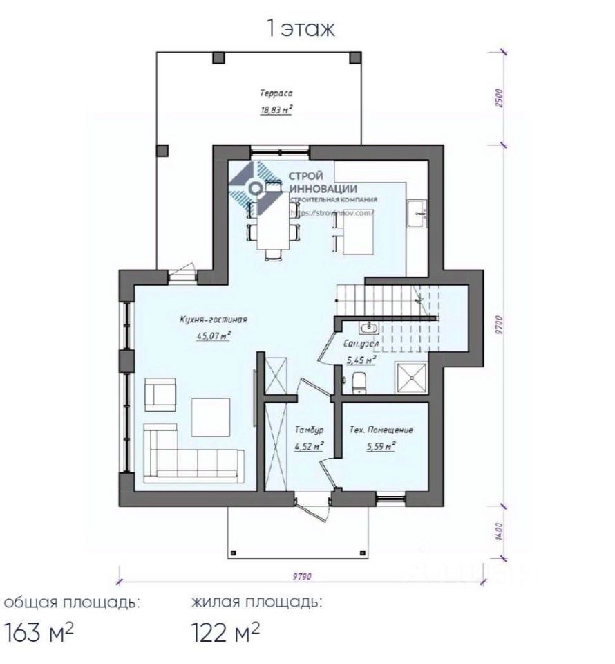 Современный образ жизни в 15 минутах от центра города Дом современной архитектуры, построенный строительной компанией с контролем качества на каждом этапе. Площадь дома с террасой — 163 м² Гараж — около 30 м² Участок — 11 соток